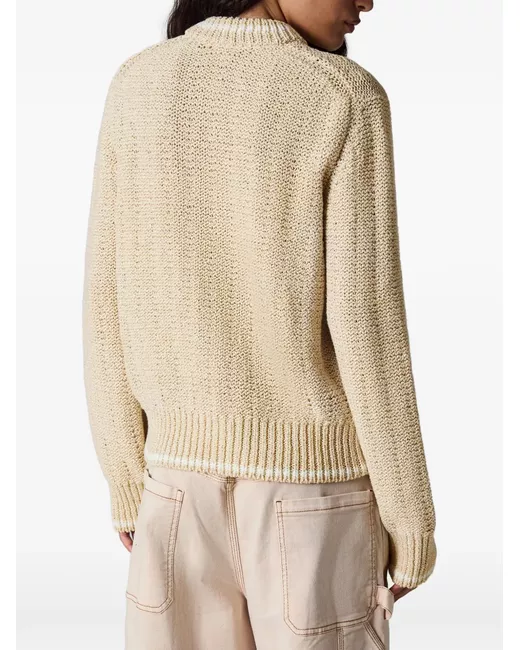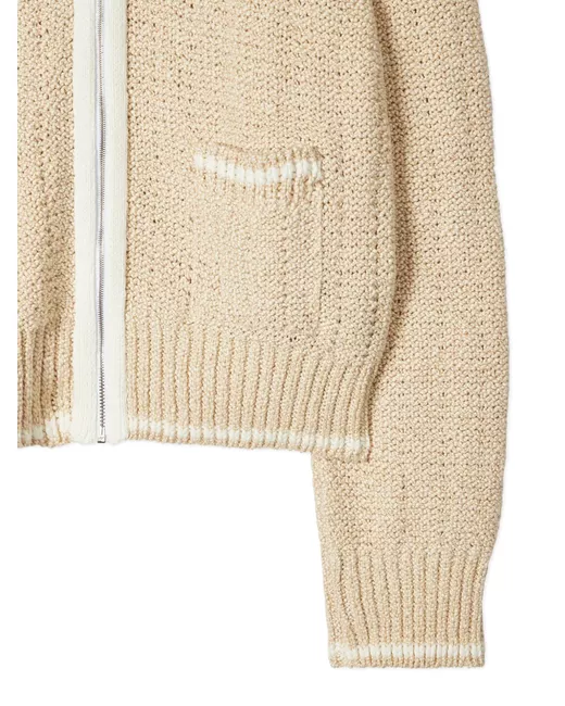 cream zip-up fastening ribbed trims round neck front pockets organic cotton