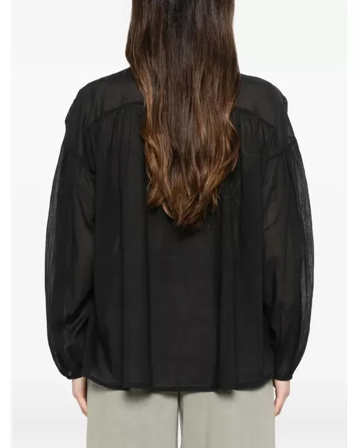 black round neck front button fastening long sleeves gathered cuffs