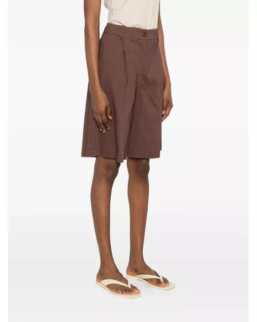 brown front pleats side pockets belt loops button closure concealed fly fastening