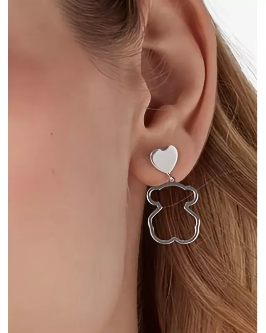 silver-tone bear design heart detail post-back fastening These earrings come as a pair.