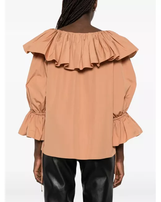 brown ruffled trim long sleeves drawstring fastening elasticated cuffs tonal stitching