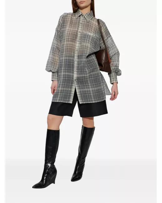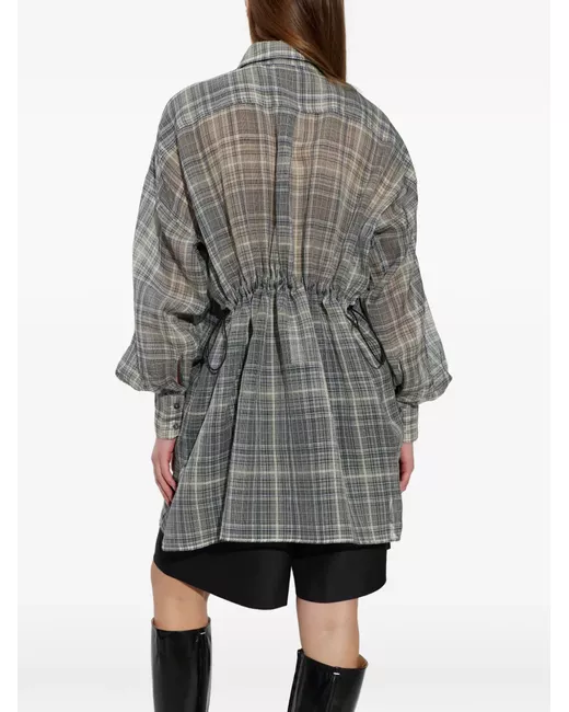 Gray plaid drawstring-waist shirt
