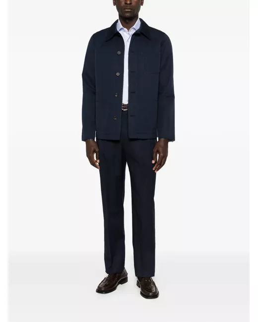 night blue button closure front patch pockets straight hem point collar long sleeves