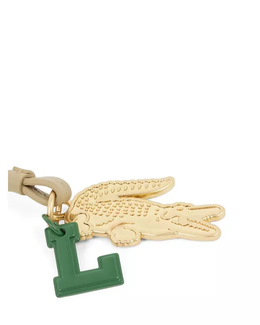 beige embossed logo racket charm crocodile charm lobster-claw fastening