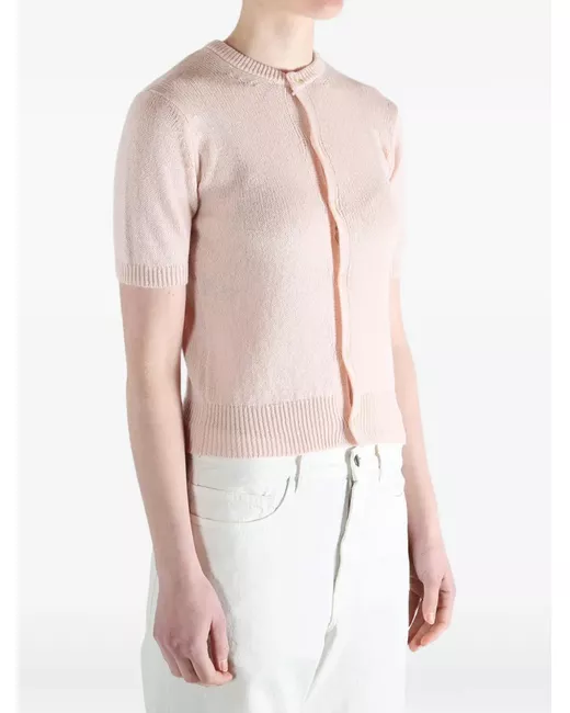 Pink button short-sleeve cardigan