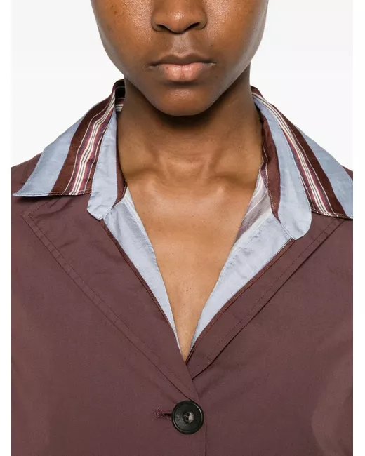 purple notched lapels front button fastening long sleeves two front patch pockets straight hem tonal topstitching