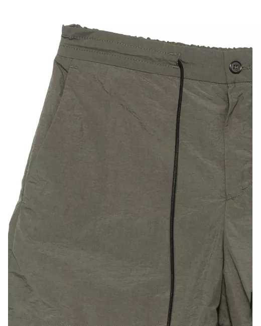 green crinkled texture elasticated waistband drawstring closure button and zip fastening two side pockets two rear patch pockets