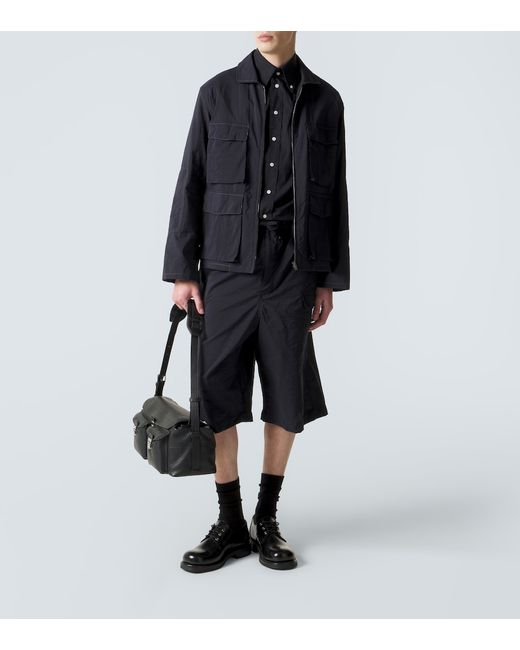 Material: 75% cotton, 25% polyamide. Care instructions: dry clean. Made in Romania. Designer color name: Squid Ink. Cotton. Closure: zipped front. Collar: classic (Straight point). Pockets: flap chest pockets, flap pockets. Cuff: buttoned.
