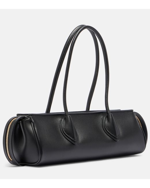 Material: lamb leather. Lining: lamb leather. Made in Italy. Designer color name: Ivory Glow. Item color: black. Hardware color: gold. Closure: two-way zipped top. Top handles. Leather.