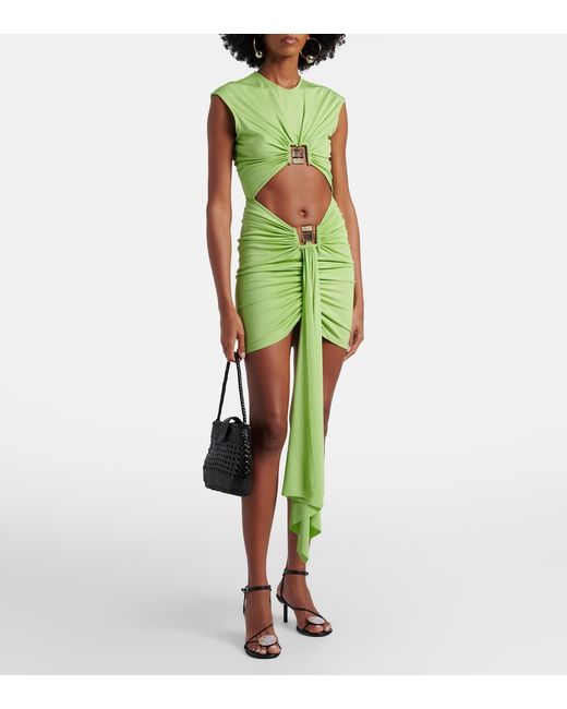 Material: 100% viscose. Care instructions: dry clean. Made in India. Designer color name: Aloe. Closure: concealed zipped back.