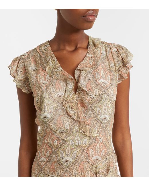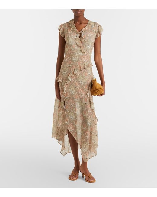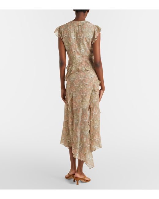 Material: 100% silk. Care instructions: dry clean. Made in China. Designer color name: Stone Khaki Multi. Lining: 97% polyester, 3% elastane. Closure: hook-fastening front, concealed zipped side. Collar: ruffled. Silk.