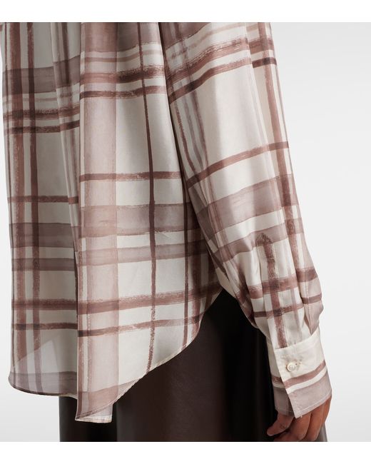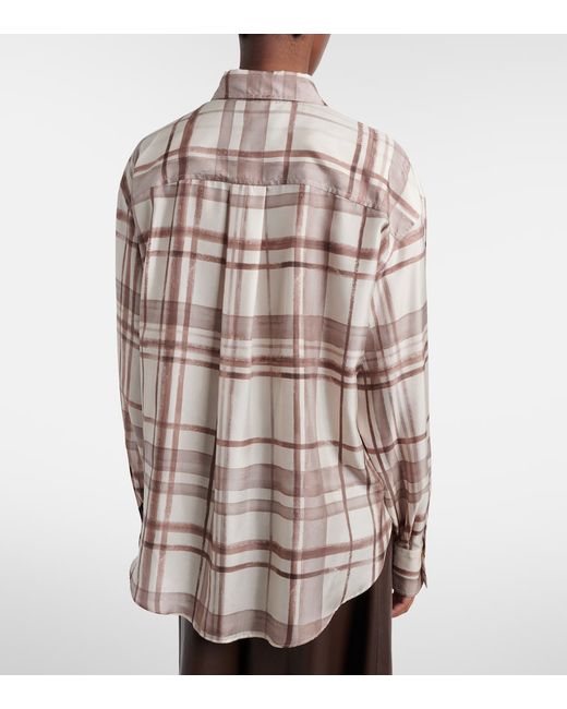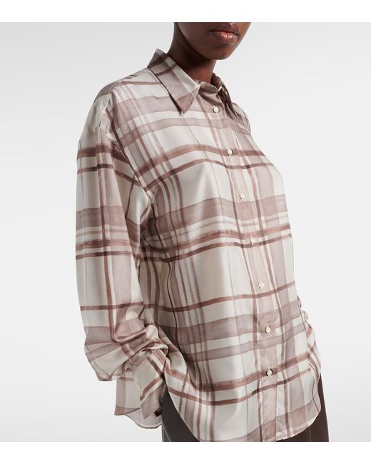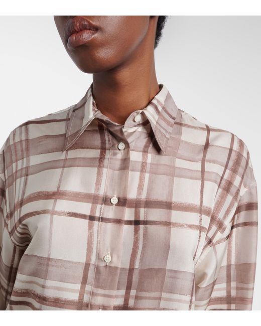 Material: 100% silk. Care instructions: dry clean. Made in Italy. Designer color name: Panama/Brown. Closure: buttoned placket. Silk. Collar: classic (Straight point). Contains non-textile parts of animal origin.