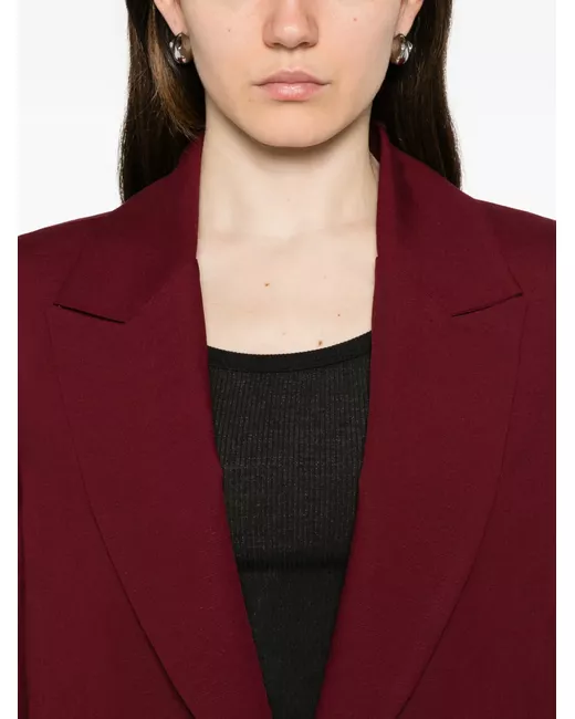 bordeaux notched lapels single breasted button fastening three-quarter sleeves turn-up cuffs front flap pockets belt loops
