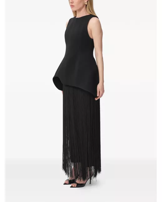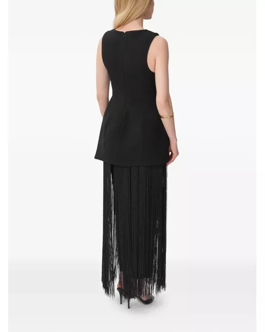 black sleeveless fringe detailing round neck