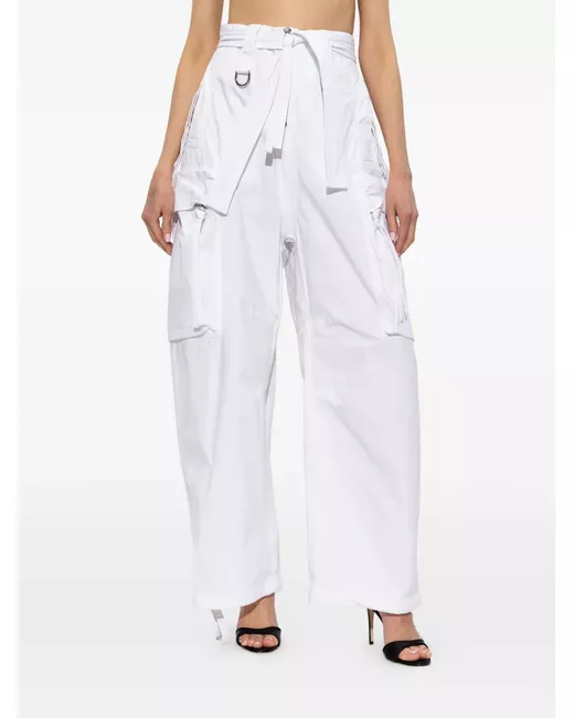 white front zip fastening belt loops silver-tone hardware multiple cargo pockets drawstring cuffs wide leg