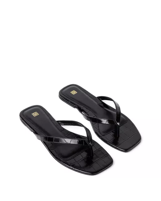 Black croc-embossed leather flip flops