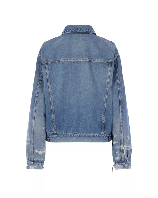blue cotton distressed effect Argyle Sashiko stitching pointed collar front button fastening long sleeves buttoned cuffs two side welt pockets adjustable side tabs straight hem