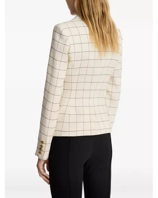white check pattern double breasted peak lapels flap pockets gold-tone buttons