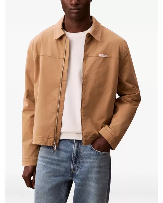 brown spread collar front zip fastening long sleeves logo patch to the chest two side slit pockets silver-tone hardware