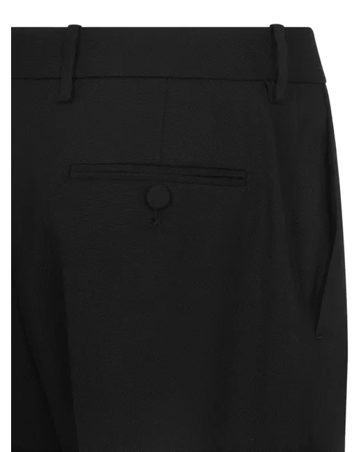 black wool belt loops concealed front fastening two side slit pockets two rear button-fastening jetted pockets pressed crease