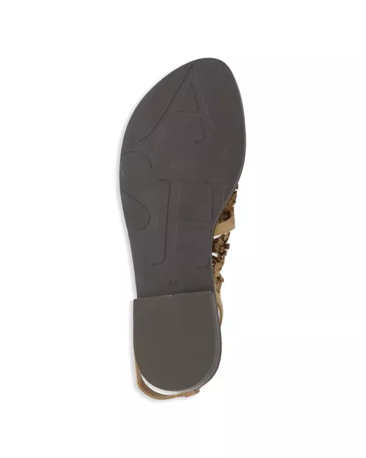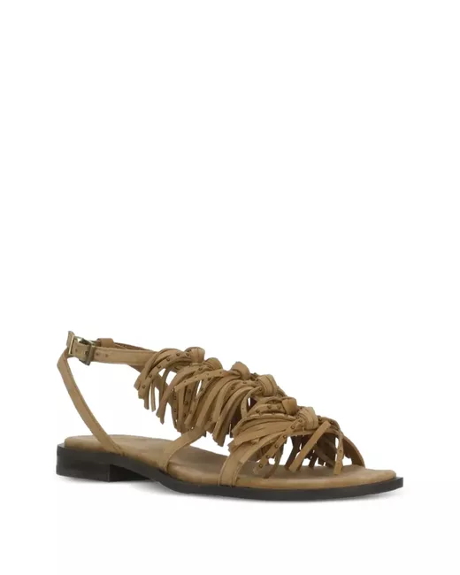mocha brown goat suede fringe detailing buckle-fastening ankle strap open toe flat rubber sole branded insole