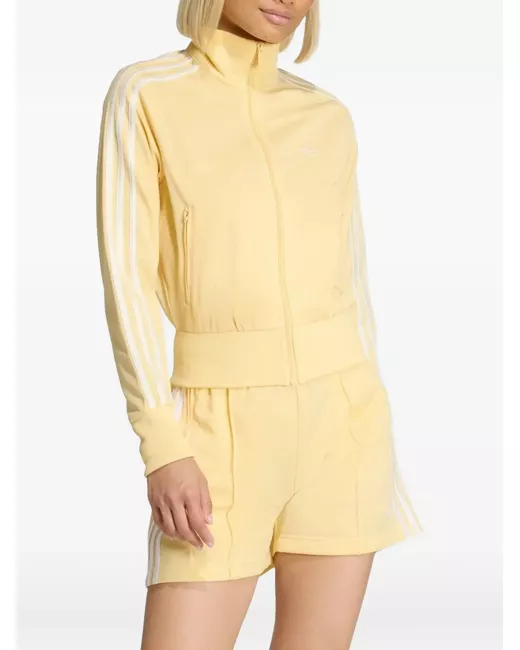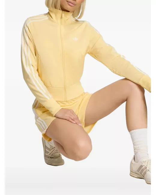yellow side stripe detailing logo patch at the chest high neck front zip fastening long sleeves two side zip-fastening pockets ribbed cuffs and hem