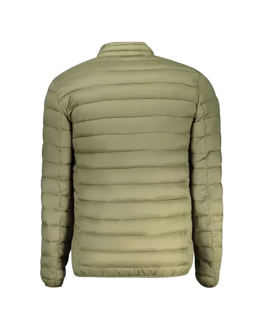 green quilted finish front zip fastening high neck long sleeves logo patch at the sleeve two side zip-fastening pockets elasticated cuffs cuffs straight hem