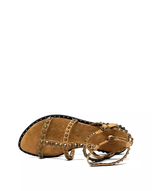 brown leather stud embellishment cage construction buckle-fastening ankle straps open toe branded footbed flat rubber sole