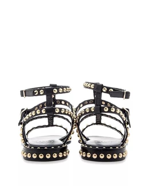 black gold-tone stud embellishment buckle-fastening ankle straps open toe flat sole branded footbed