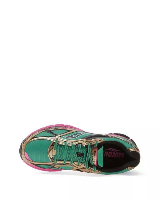 green metallic-effect overlays front lace-up fastening padded ankle collar branded footbed