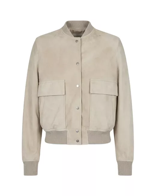 ivory leather suede finish press-stud fastening ribbed collar long sleeves ribbed cuffs two front flap pockets ribbed hem