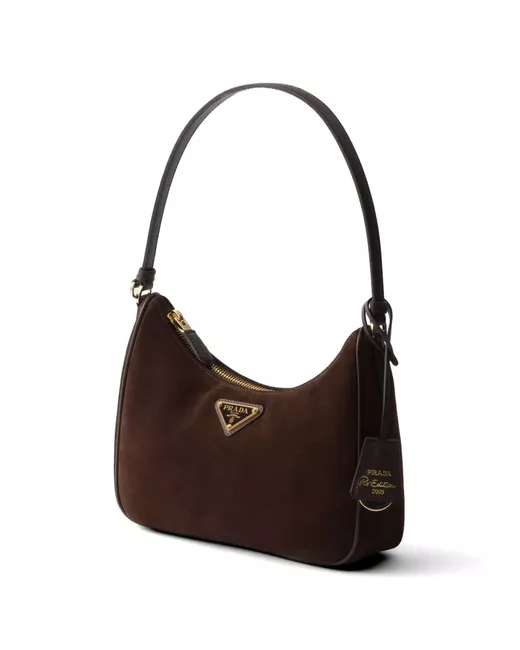 zipper closure enameled metal triangle logo Saffiano leather handle, drop 20 cm logo-print nylon lining