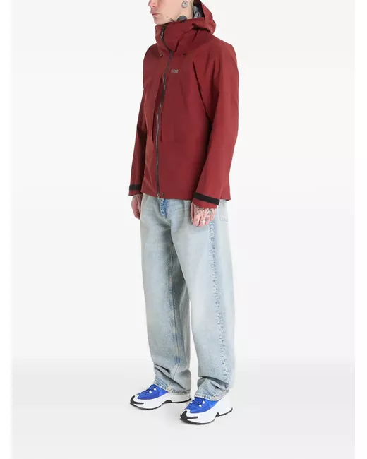 red Evolution style drawstring hood front zip fastening long sleeves touch-strap cuffs underarm zip vents chest zip pockets internal zip pocket logo print at the chest logo print to the rear