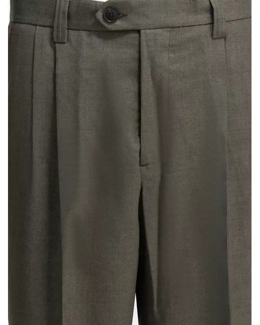 taupe brown wool pleated details belt loops button and zip fly fastening two rear button-fastening jetted pockets two side inset pockets pressed crease