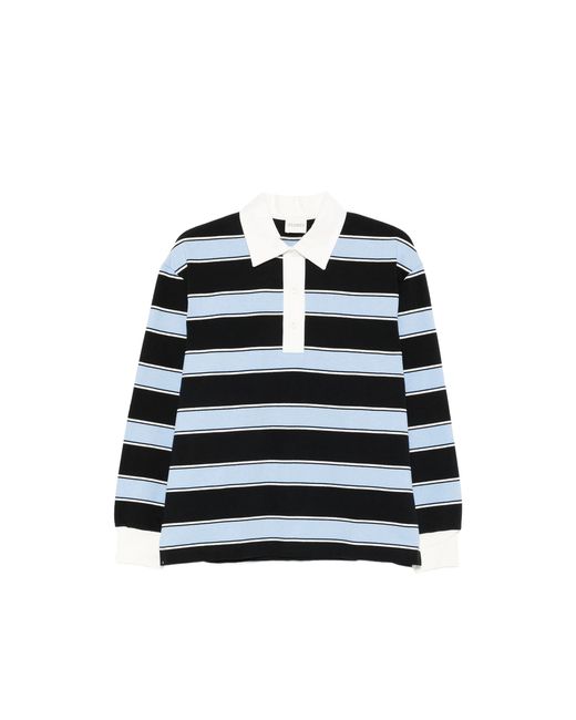 blue striped pattern polo collar long sleeves button placket ribbed cuffs
