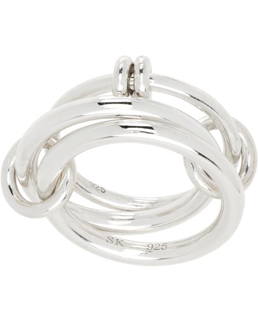 Handcrafted stacked rings in sterling silver. Connecting hoops at length. Supplier color: Silver