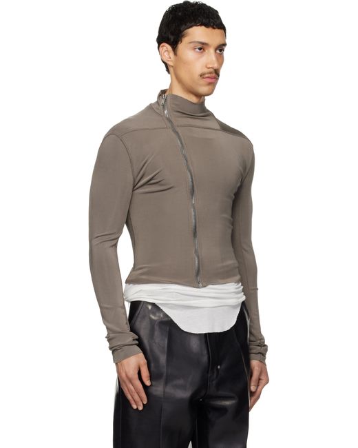 Stretch knit viscose jacket. · Overlock stitching throughout · Stand collar · Offset zip closure Supplier color: Dust