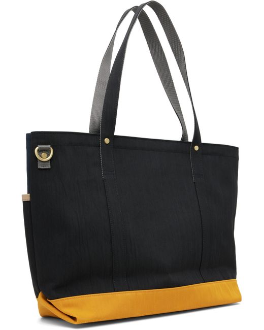Twill tote. · Fixed shoulder straps · Adjustable and detachable crossbody strap · Clasp fastening and patch pockets at face · Zip pocket at interior · H12 x W18.5 x D6 Supplier color: Navy/Black