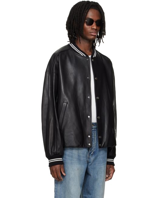 Men's Black Leather Baseball Jacket