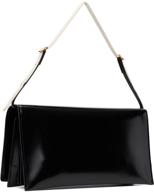 Buffed calfskin shoulder bag. · Adjustable and detachable shoulder strap · Logo stamp at face · Magnetic press-stud closure · Patch pockets and card slot at three-compartment interior · Buffed nappa leather lining · H5.5 x W11.25 x D3 Supplier color: Black