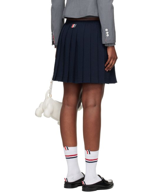 Pleated wool seersucker miniskirt. · Stripes throughout · Drawstring at elasticized waistband · Tricolor logo flag at back waistband Supplier color: Navy