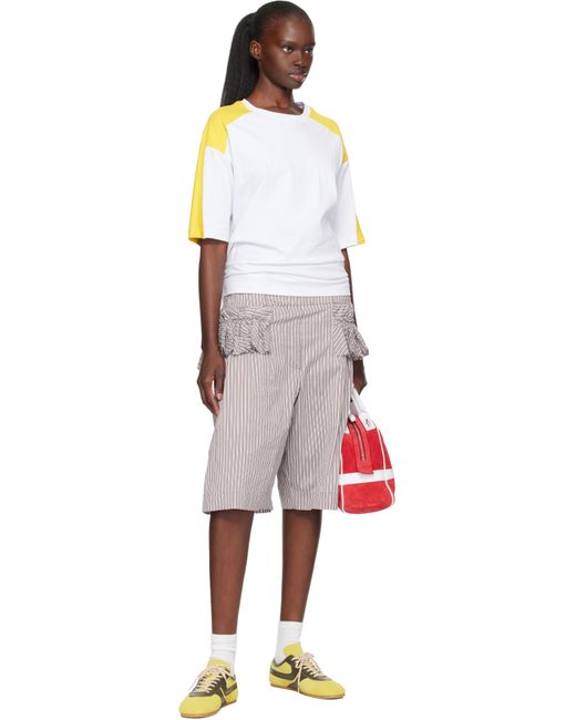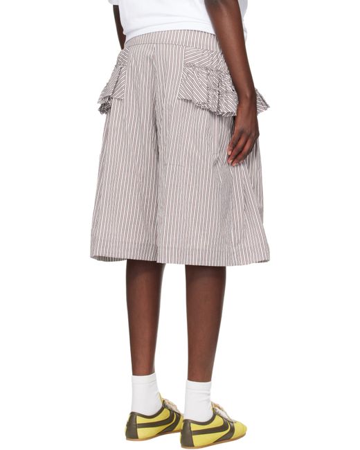 Cotton- and silk-blend poplin shorts. · Stripes throughout · Concealed drawstring at elasticized waistband · Two-pocket styling · Mock fly · Ruffled trim at sides · Full voile lining Supplier color: Brown