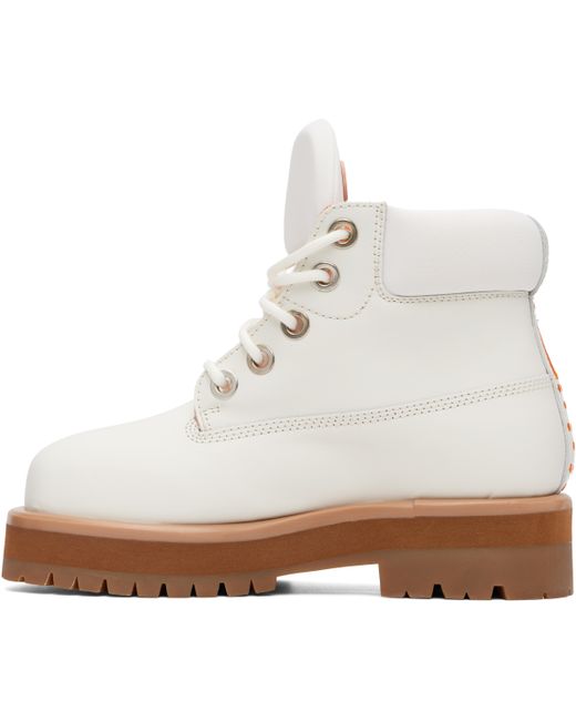 Ankle-high buffed leather boots. · Lace-up closure · Rubberized graphic appliqué at padded tongue · Padded collar · Logo-embroidered pull-loop at heel collar · Jersey sock-style lining · Foam rubber midsole · Treaded rubber sole Supplier color: White