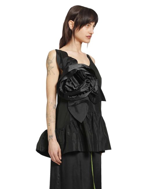 The pressed rosette and tilted neck detail highlight the brand's flair for sculptural, runway-ready silhouettes. It showcases the house's emphasis on dramatic, statement-making craftsmanship.