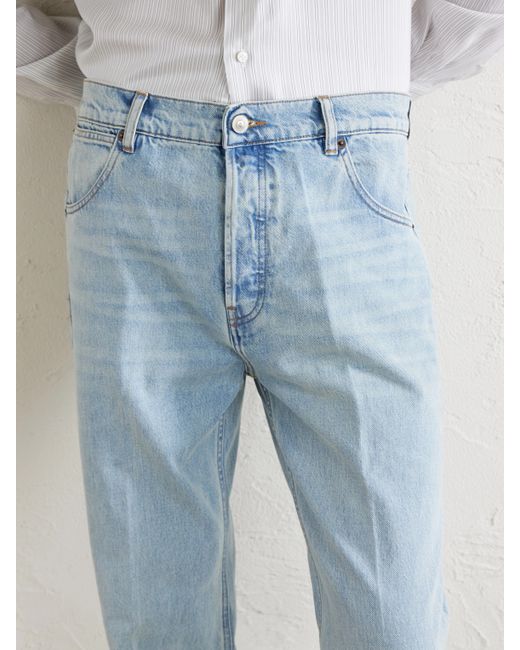 Husbands blends '70s-inspired tailoring with modern refinement. These jeans are cut from durable cotton denim with a high rise and flared legs, finished with pressed creases that sharpen the line while retaining a relaxed, retro-leaning silhouette.