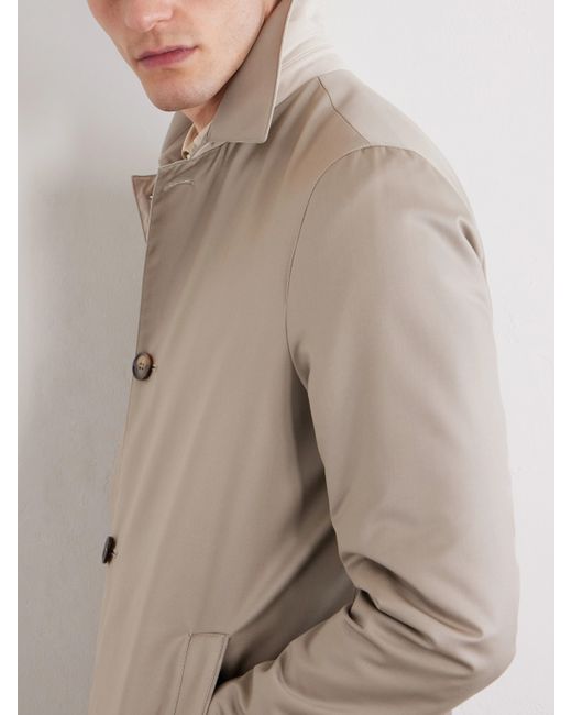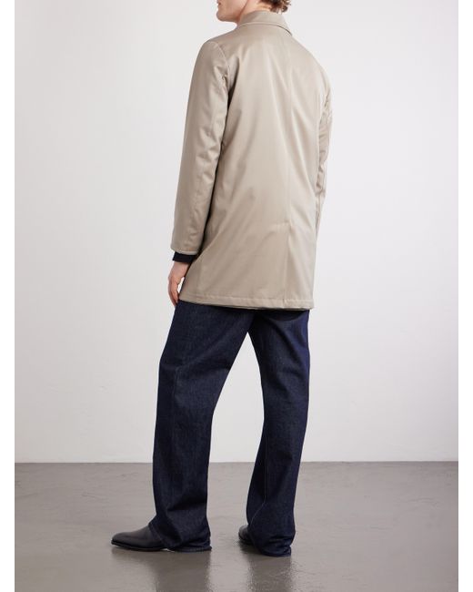 Thom Sweeney's rain mac is crafted from pure wool-twill, offering a soft, structured handle with natural warmth. Designed with a reversible construction, it allows for versatility in wear, while the clean lines keep the silhouette composed.