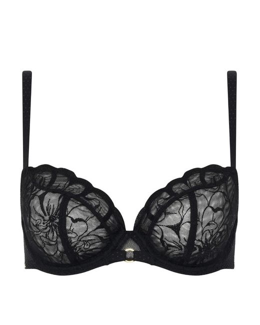 Feel luxurious and secure at the same time in this gorgeously feminine underwire bra from Chantelle's Fleurs range! This bra is impeccably designed to offer optimum comfort support with the chimney back with lycra lining, elastic finishes at the neckline, underarms, and back, the use of rigid tulle on the cups, centre front and sides, and the reassuring cup coverage. These features make this bra perfect for everyday use, but it doesn't compromise on style though! The delicate floral embroidery on the cups and the subtly revealing honeycomb fishnet back exude sophistication and opulence, allowing you to feel absolutely beautiful. The straps with polka dots, decorated with rings on the back, and the classic Chantelle branded plaque on the side finish off this piece with a fabulous flourish!.