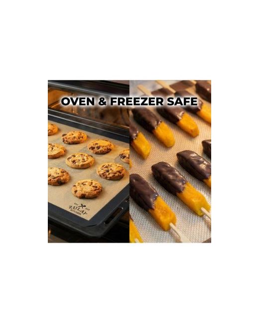 Bake smarter with the Zulay Kitchen Silicone Baking Mat Set. This 2-pack of 16.5 à 11.6 Inches reusable baking sheets provides a reliable non-stick surface for cookies, pastries, bread, and more, no parchment paper or cooking spray needed. Designed for even heat distribution, these mats help deliver perfectly baked treats with consistent results every time. Made from food-safe, durable silicone, they're heat-resistant up to 250°F and built to withstand repeated oven use without warping or tearing. The flexible design allows for easy food release and quick cleanup, simply rinse or place in the dishwasher. Eco-friendly and cost-effective, these reusable baking mats reduce waste while protecting your pans from residue and buildup. A must-have for home bakers seeking convenience, performance, and dependable results in every batch.