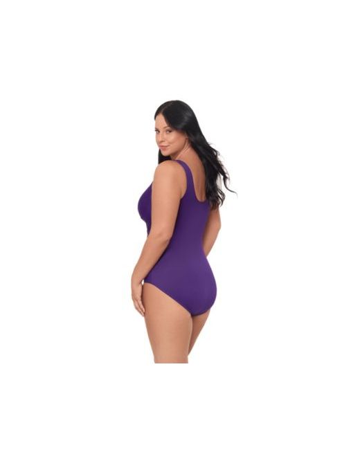 Sheer accents at the side nip the waist, bringing an alluring look to this plus size one-piece from Miraclesuit. The swimsuit features allover control that helps smooth and shape.