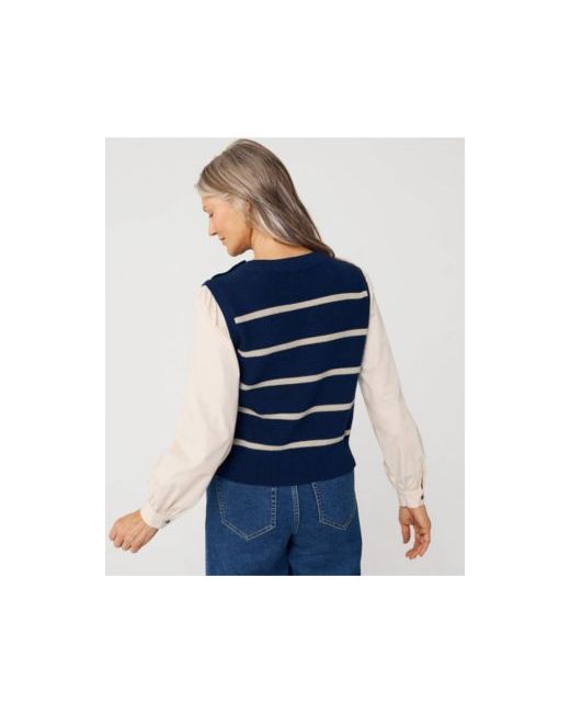 Made with the softest mid-weight cotton yarns and dyed to hold color longer, our legendary collection now includes this beautiful two-in-one sweater. The body is the Drifter you know and love but the poplin sleeves will give you the look of a vest with the comfort of a sweater. Plus, it has a button shoulder detail for an added touch of style. .